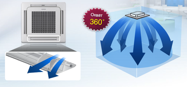 Касетні кондиціонери Samsung інверторного типу застосовуються для охолодження й нагрівання приміщень побутового та комерційного призначення, у магазинах, офісах, лікарнях тощо.